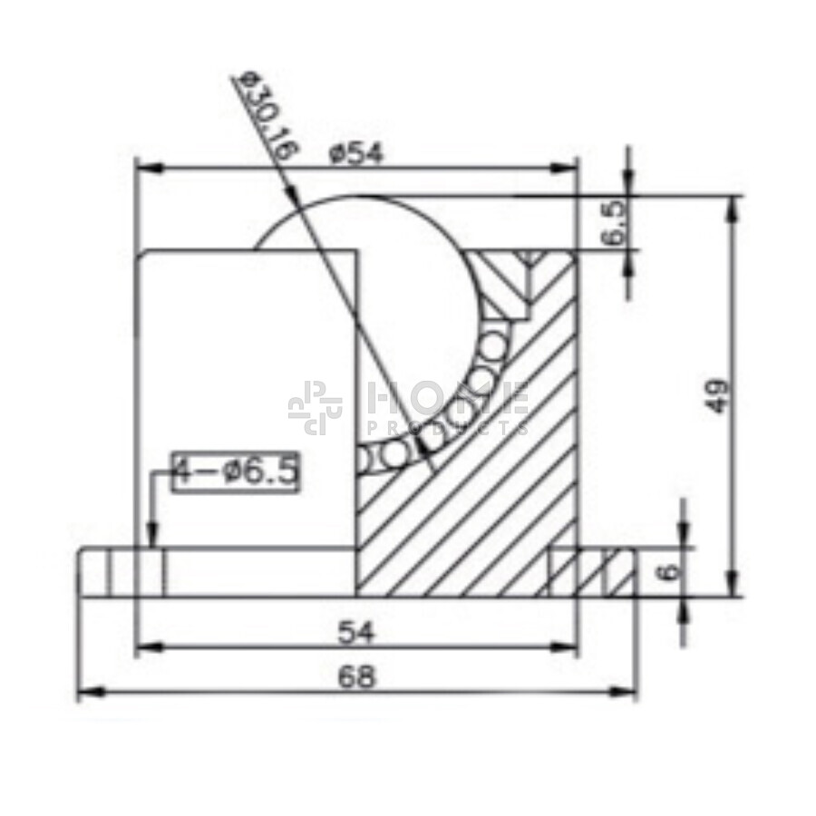 Kugelrolle, 30.16 mm, mit Befestigungsbohrungen und Flansch